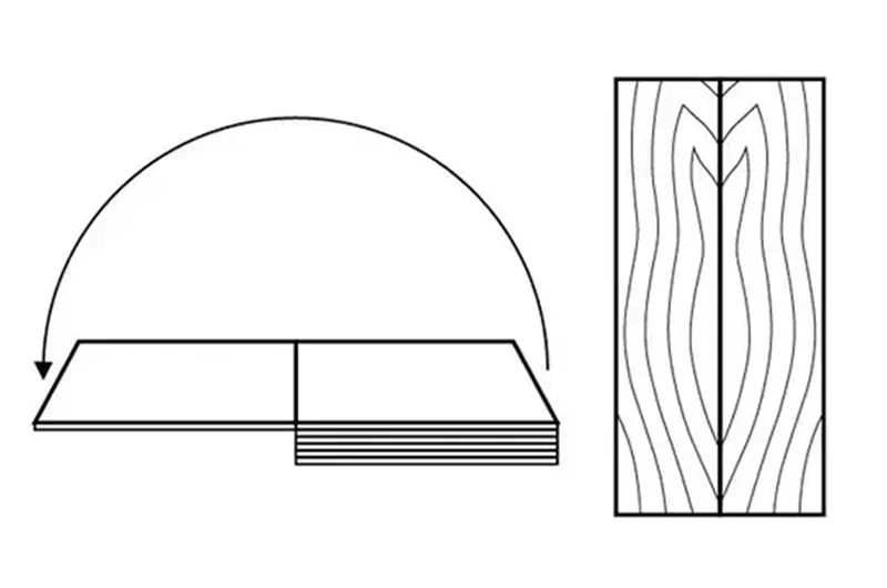 A veneer “face” is a professional term for a panel composed of several sheets of veneer. The sheets are selected and glued together to form a single pattern. The main types of faces are: book match, slip match, slip and turn match, reverse slip match, random match, and pleasing match.