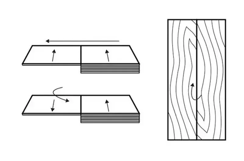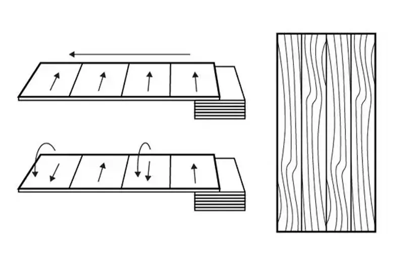 The cutting method determines not only the pattern but also the properties of the material. Types of cuts differ by the angle at which the knife cuts the wood.